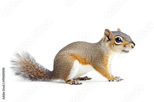 © Barra Fire, Obraz premium Squirrel climbing and chattering isolated on a white background