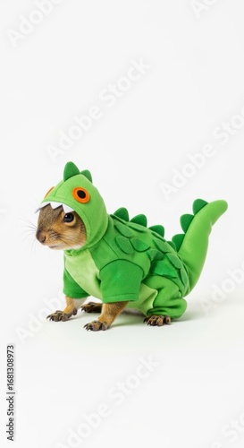 Obraz premium squirrel dressed as a dinosaur, Halloween costume, prehistoric dino costume