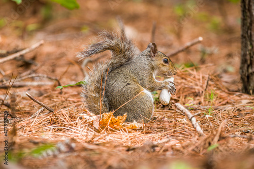 © Sandra Burm, Fototapeta premium Squirrel eating a mushroom
