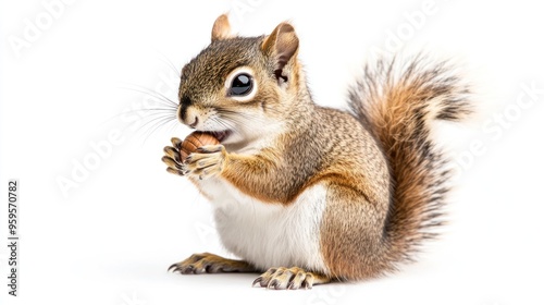 © matoya, Fototapeta premium Squirrel Eating a Nut Against a White Background