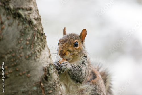 Fototapeta premium squirrel eating a nut on a cherry tree in washington dc in spring during the...