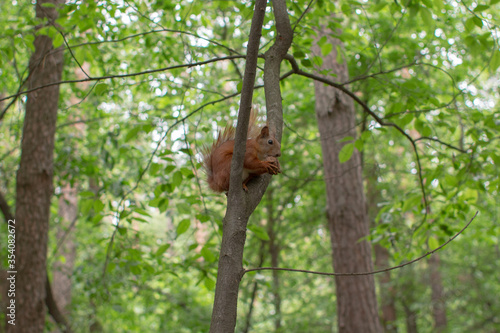 © dyachenkopro, Obraz premium squirrel eating a walnut on a branch