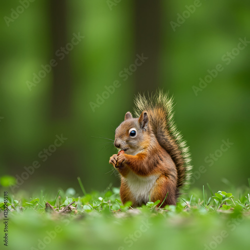 © MdMasud, Obraz premium Squirrel Eating Nut in Forest Environment