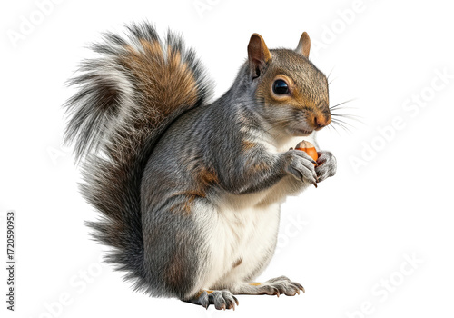 © Mahmudur, Obraz premium Squirrel eating nut isolated on transparent background, a cute animal