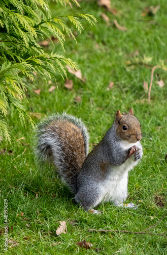 © Andrew, Fototapeta premium Squirrel eating nuts in the back garden