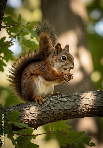 © Dimas, Obraz premium Squirrel Eating Nuts on a Branch.