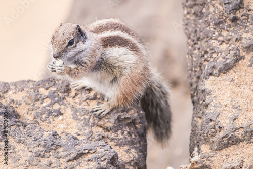 © simona, Naklejka premium Squirrel eating some bread for lunch