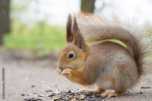 © OlVic, Obraz premium Squirrel eating sunflower seeds.