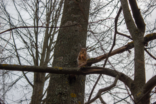 Obraz premium Squirrel eats on a tree