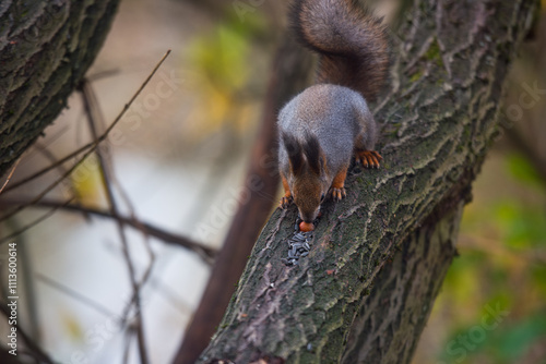 © Igor Kovalchuk, Obraz premium Squirrel feeding at branch