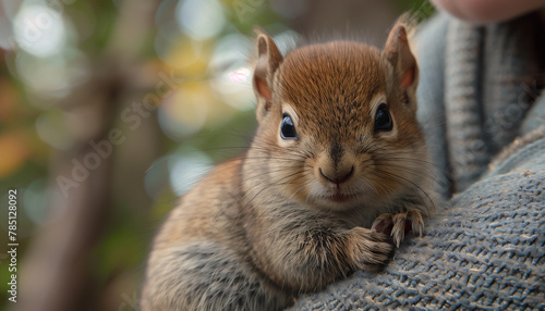 Obraz premium Squirrel held in woman's hands, wild nature, autumn, helping animals