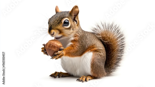 Obraz premium Squirrel Holding a Nut Against a White Background