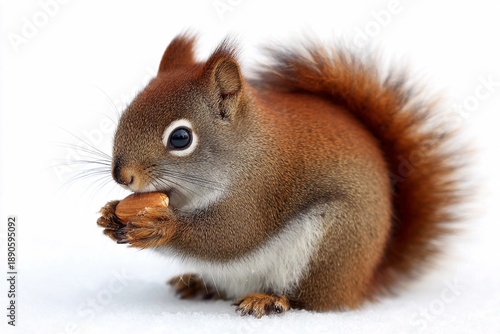 © pavlofox, Obraz premium Squirrel holding nut in winter setting