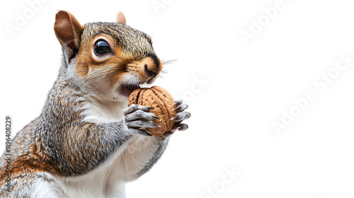 © Thanit, Obraz premium Squirrel holding nut isolated background animal photography studio setting close-up nature concept