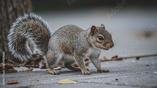 © AkuAku, Fototapeta premium Squirrel in an Urban Setting Carrying Out Its Usual Behavior