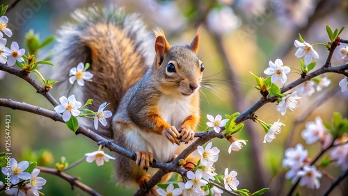 © Tima, Fototapeta premium Squirrel in Blossoming Tree