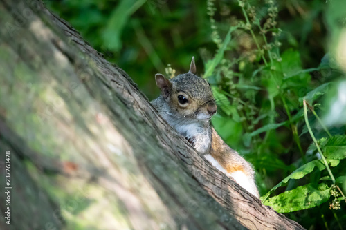 © Stepan Chour, Naklejka premium Squirrel is lurking behind the tree.