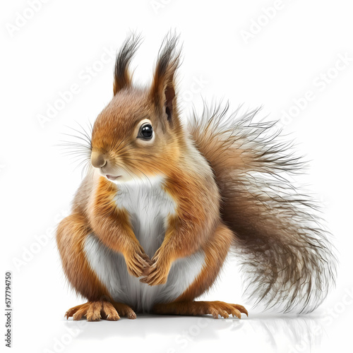 © premiumdesign, Fototapeta premium Squirrel Isolated White Background. Generative AI