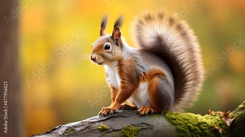 © Dee, Obraz premium Squirrel Looking Out While Perched On A Tree In Nature. Generated with AI.