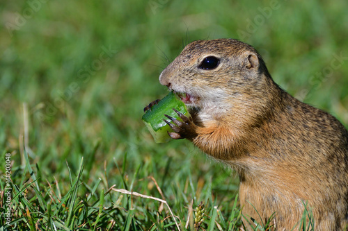© Pavol Klimek, Fototapeta premium Squirrel lurking and eating in the grass