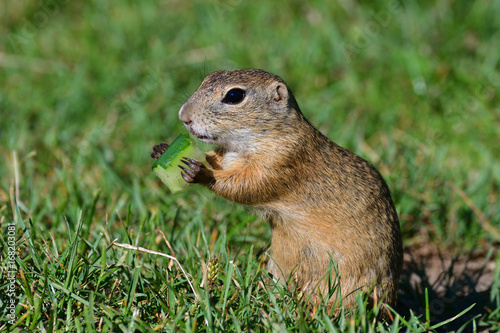 © Pavol Klimek, Fototapeta premium Squirrel lurking and eating in the grass