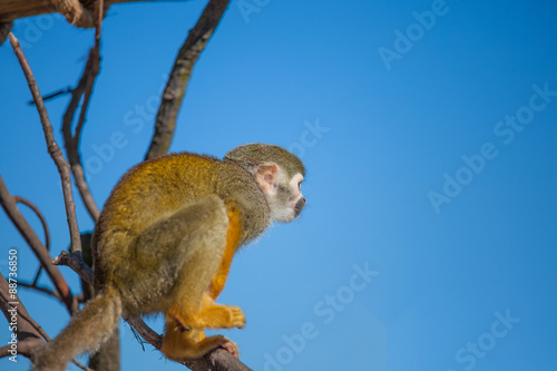 © shaunwilkinson, Obraz premium Squirrel Monkey on Branch and blue sky