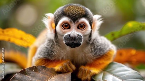 © Man888, Obraz premium Squirrel monkey with big eyes looking at the camera