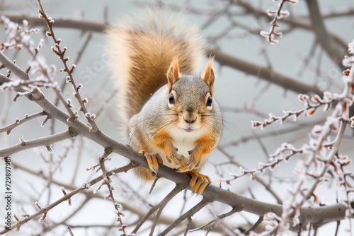 © primopiano, Fototapeta premium squirrel navigating through feathered branches