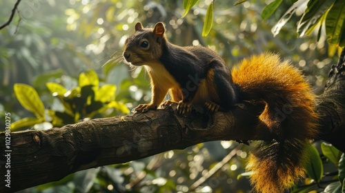 © Imsuniyah, Obraz premium Squirrel on a Branch