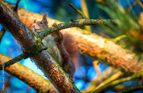 © Thomas, Fototapeta premium squirrel on a branch with a blue sky