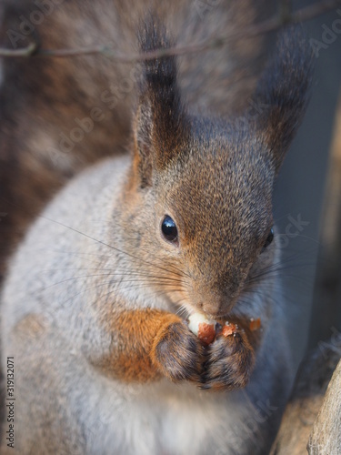 © enskanto, Fototapeta premium squirrel on a feeding trough
