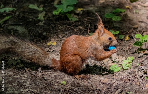 © Евгений Еськов, Fototapeta premium Squirrel on a forest path