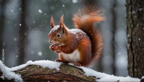 © mischenko, Obraz premium Squirrel on a tree in winter
