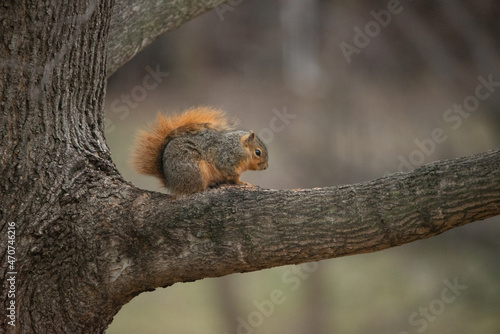Fototapeta premium Squirrel on A Tree in Winter Time