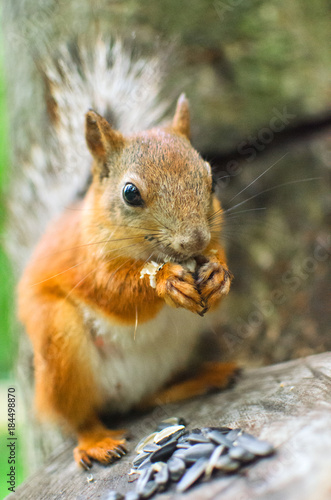 © tntk, Obraz premium squirrel on a tree stump eating seeds