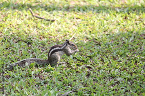 © ChandraSekhar, Obraz premium squirrel on grass eating