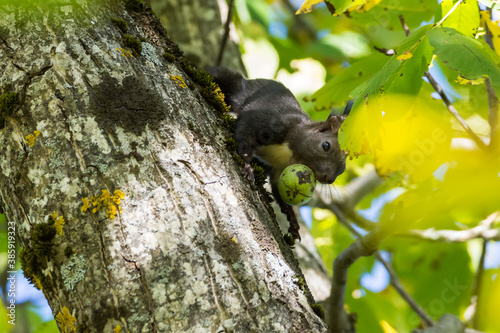 Fototapeta premium Squirrel on the tree with the walnut