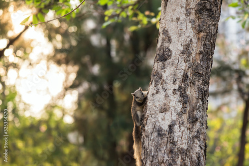 Obraz premium squirrel on tree trunk at sunrise