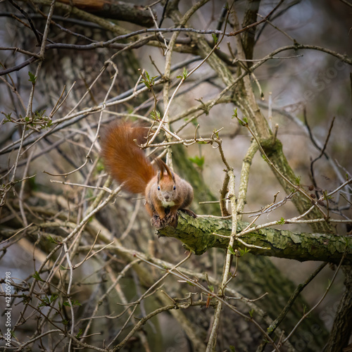 © Ewald Fröch, Fototapeta premium Squirrel ready to jump off a branch