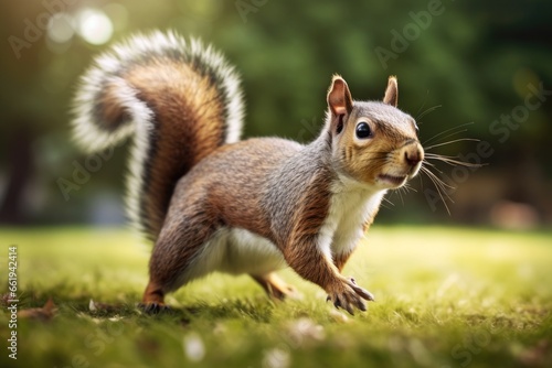 Fototapeta premium Squirrel Running Across Lush Green Field