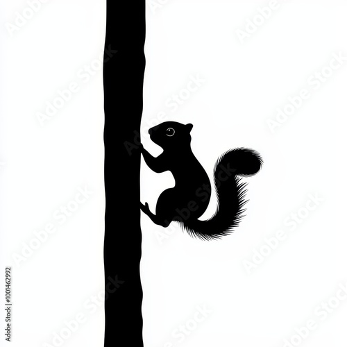 © Sakiyah, Fototapeta premium Squirrel Silhouette Climbing Tree Isolated Background