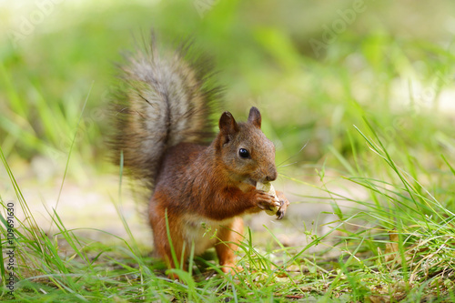 © nelik, Obraz premium Squirrel sitting on a grass