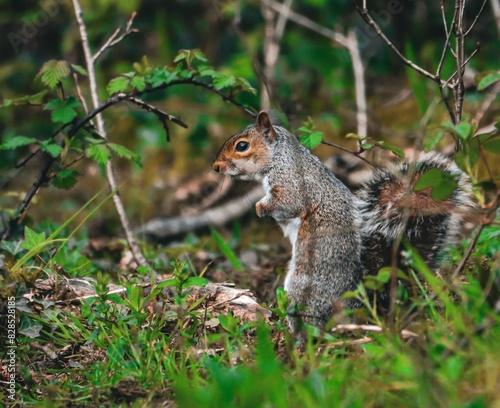 Fototapeta premium Squirrel standing in grass near trees