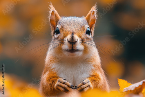 © Rano, Obraz premium Squirrel standing in leaf-filled field.