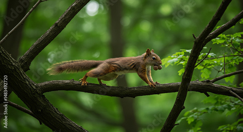 Fototapeta premium squirrel walking on a tree branch