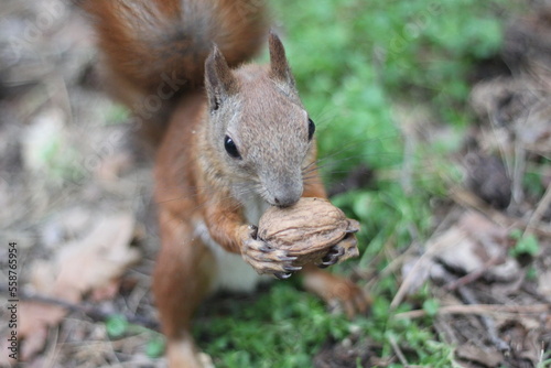 Obraz premium squirrel with a nut in the forest