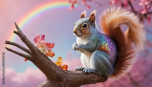 © BOJOShop, Obraz premium Squirrel with a Rainbow on its Back.