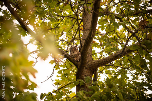 © Matthias Cooper, Obraz premium Squirrel with acorn in tree