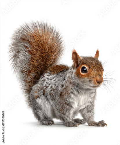 Obraz premium Squirrel with fluffy tail isolated on white background.