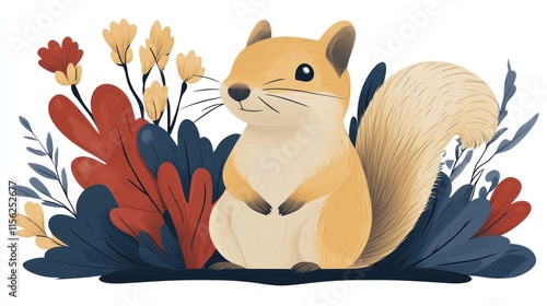 © muhammad, Fototapeta premium Squirrel with folk art style leaves and floral pattern